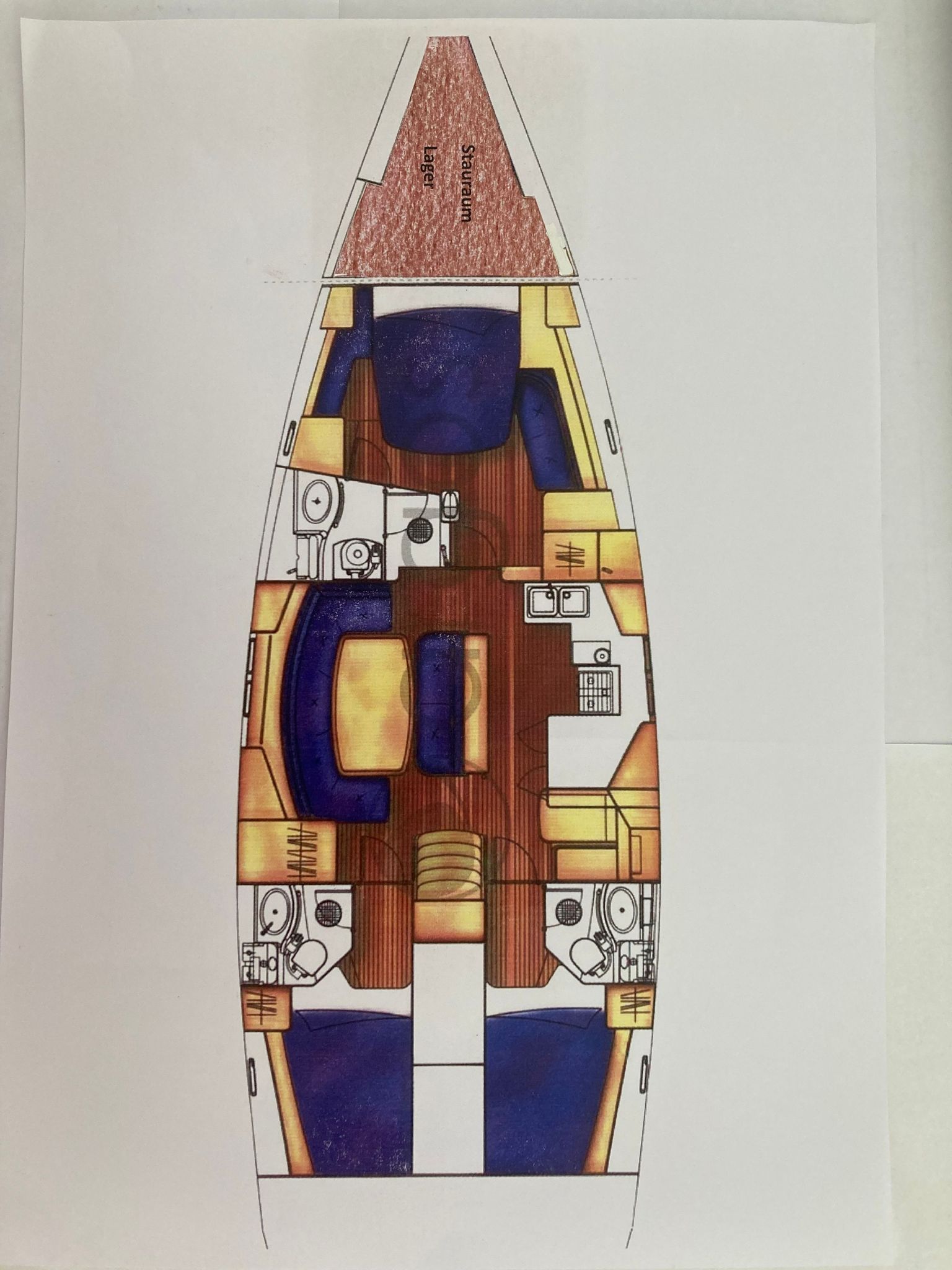 Es gibt eine Eignerkabine im Bugbereich und zwei große Gästekabinen im Heckbereich.